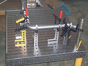 柔性工装平台可以在三维空间进行组合。模块化系统在安装、调整和夹紧工件中体现了它的通用功能,在大型工件的焊接上,该特点更加突出。柔性化的另一面体现在操作简便。在工作台和模块上,所有以12.5mm和25mm为倍数的尺寸均可直接找到,再配上少量的调整片,可以非常方便地准确定位。
